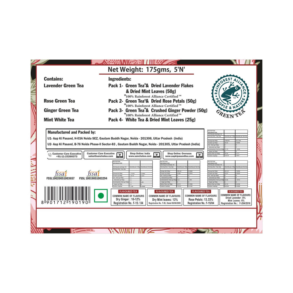 Refreshing and cooling, this tea helps reduce body heat, aids digestion, and rejuvenates the senses — perfect for warm afternoons or as a post-meal refresher.