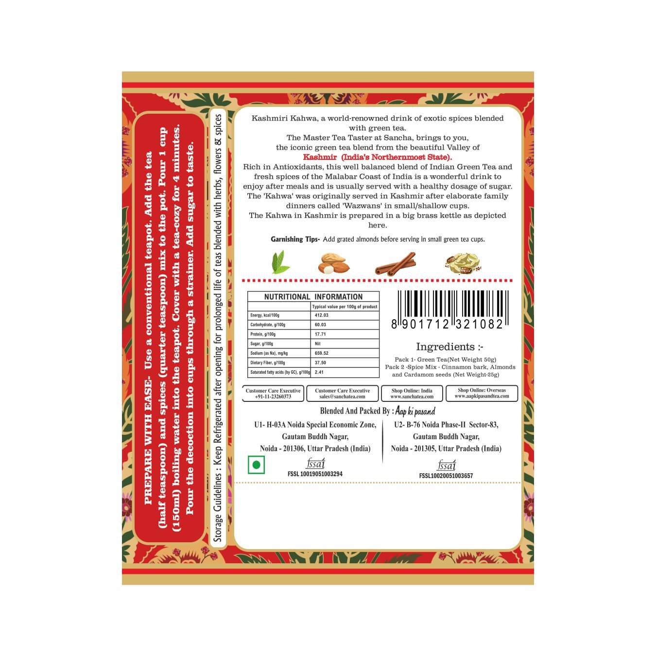 From the valleys of Kashmir, this iconic Kahwah Green Tea is a traditional blend crafted by our Master Tea Blenders at Aap Ki Pasand.