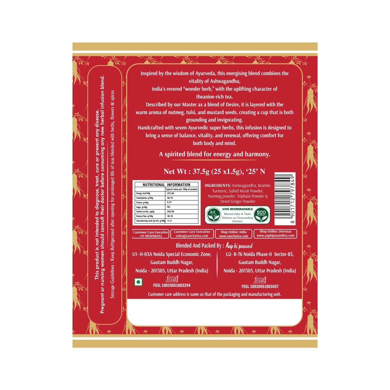 Crafted by our Master Blenders and inspired by the wisdom of Ayurveda, this 100% caffeine-free herbal tea brings together India’s most powerful adaptogens and aromatic spices in a blend described as a tea of “Desire.”