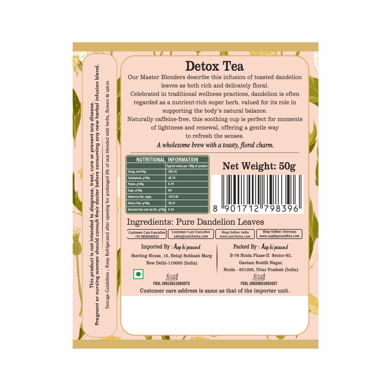 Dandelion Herbal Tea | 100% Caffeine Free Detox Tisane