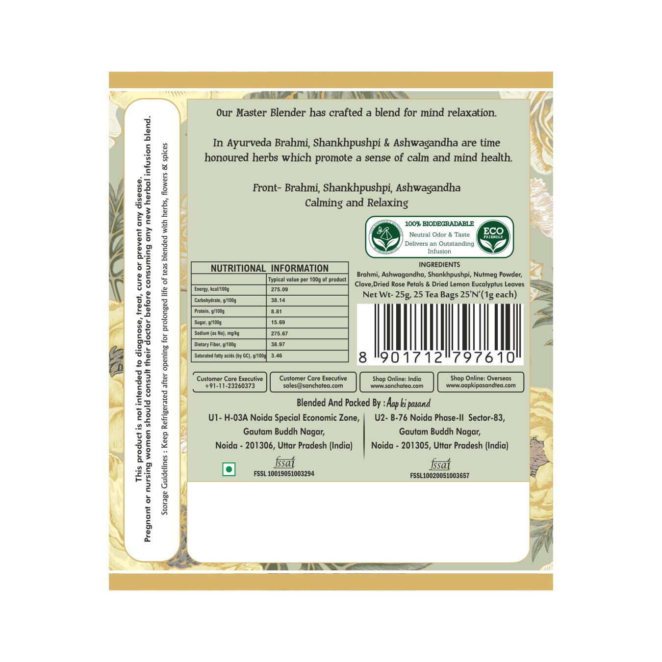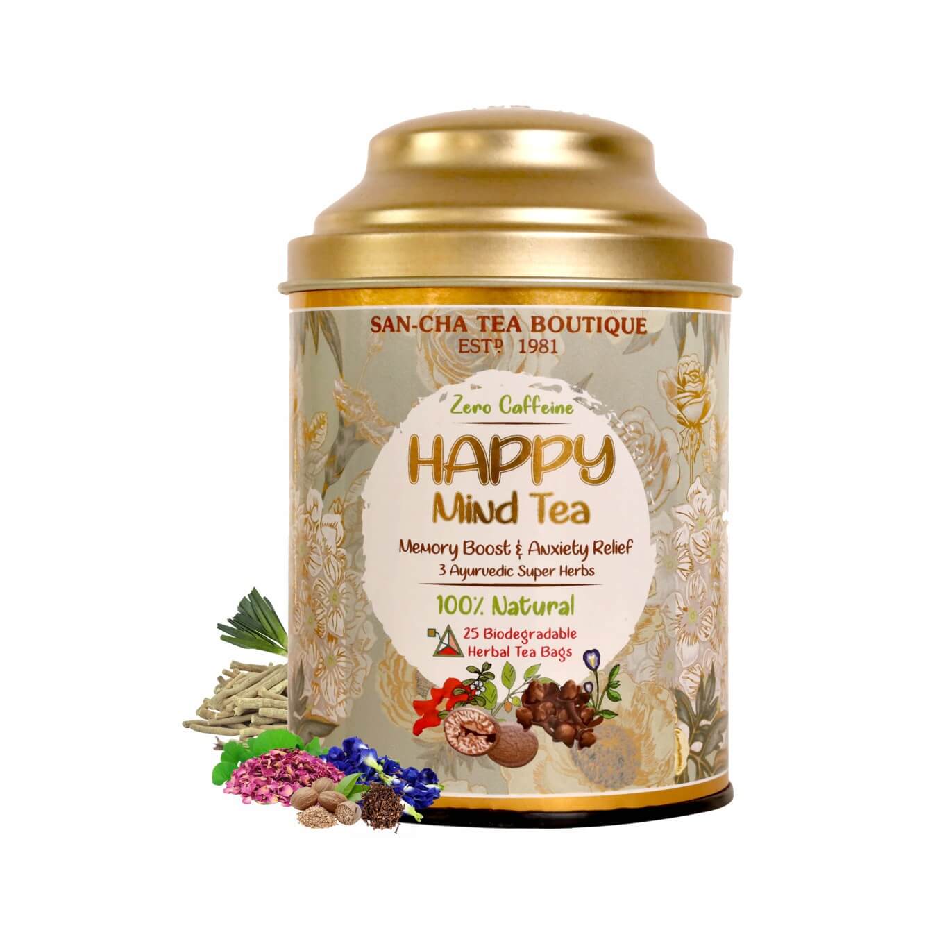 Find calm, clarity, and balance with Happy Mind Herbal Tea, a caffeine-free infusion crafted by our Master Blender using three of Ayurveda’s most revered herbs – Brahmi, Shankhpushpi, and Ashwagandha.