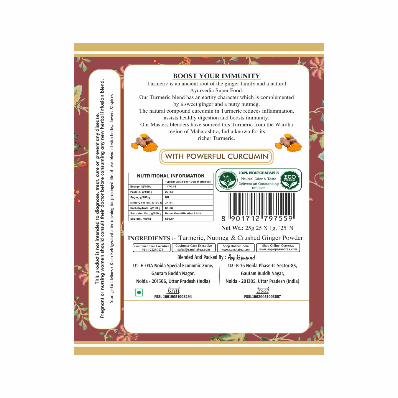 A refreshing, caffeine-free herbal tea crafted with time-honoured Ayurvedic spices. The Master Tea Blenders at Aap Ki Pasand worked with practitioners of ancient Indian medicine to create this unique blend, with turmeric at its heart. Known as the “Golden Spice,” turmeric has been cherished in Ayurveda for its healing and anti-inflammatory powers.