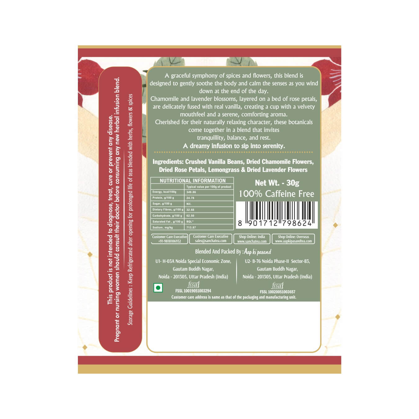 Unwind at the end of the day with the Sleeping Beauty Herbal Infusion, a soothing blend of chamomile, lavender, and vanilla crafted by the master blenders at Aap Ki Pasand. This calming infusion is designed to help you relax, de-stress, and prepare for a restful night’s sleep.