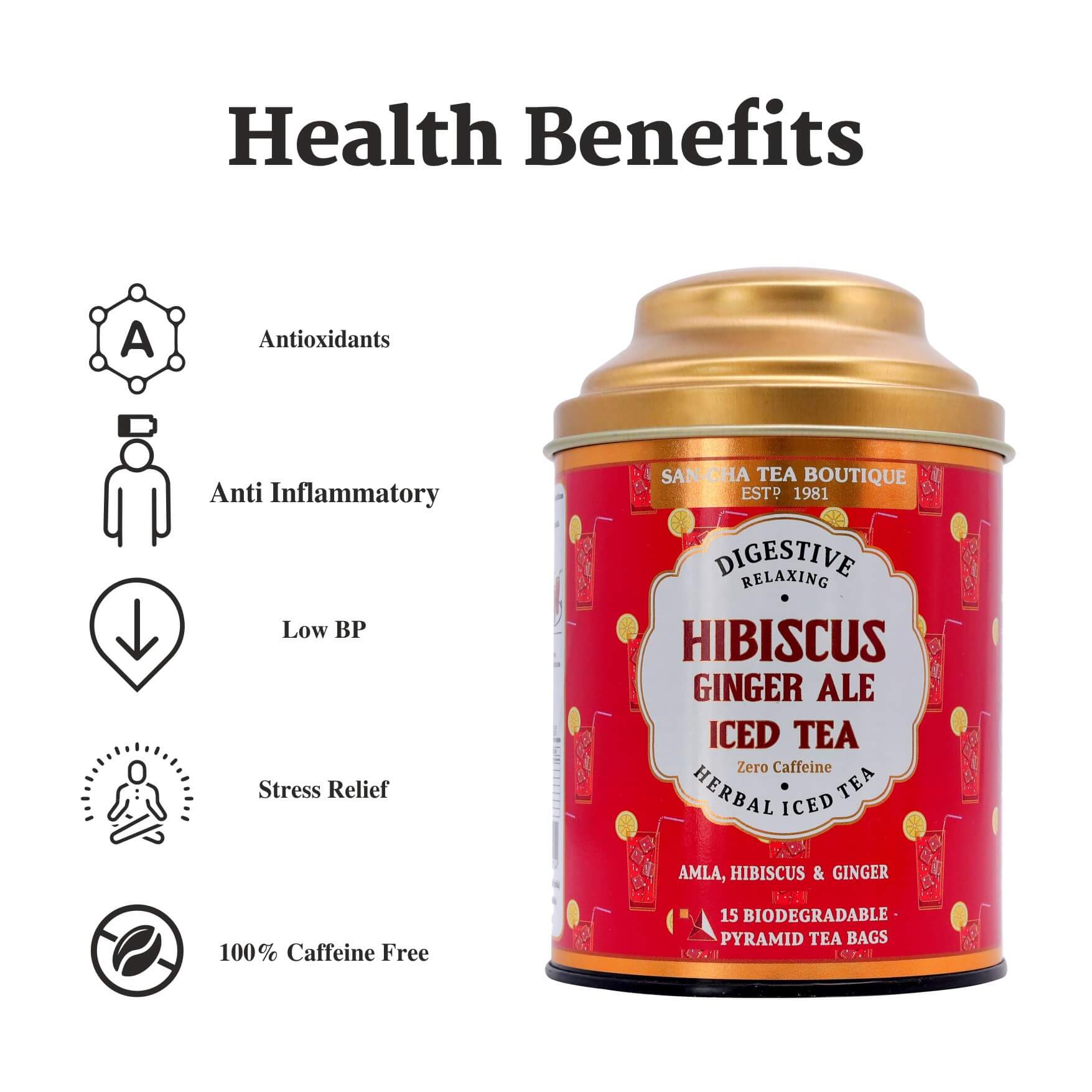 The Hibiscus Ginger Ale Iced Tea is a refreshing, all-natural herbal blend crafted by our Master Tea Blender, inspired by Ayurvedic traditions and age-old Indian home remedies.