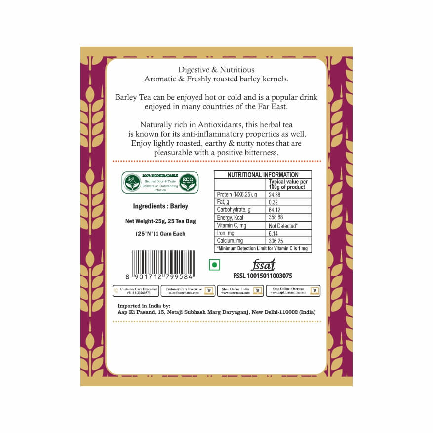 Experience the wholesome simplicity of Barley Herbal Tea, crafted from freshly roasted barley kernels. 100% natural and caffeine-free, this soothing tisane has long been cherished in Asia for its digestive benefits, immunity-boosting properties, and anti-inflammatory effects.