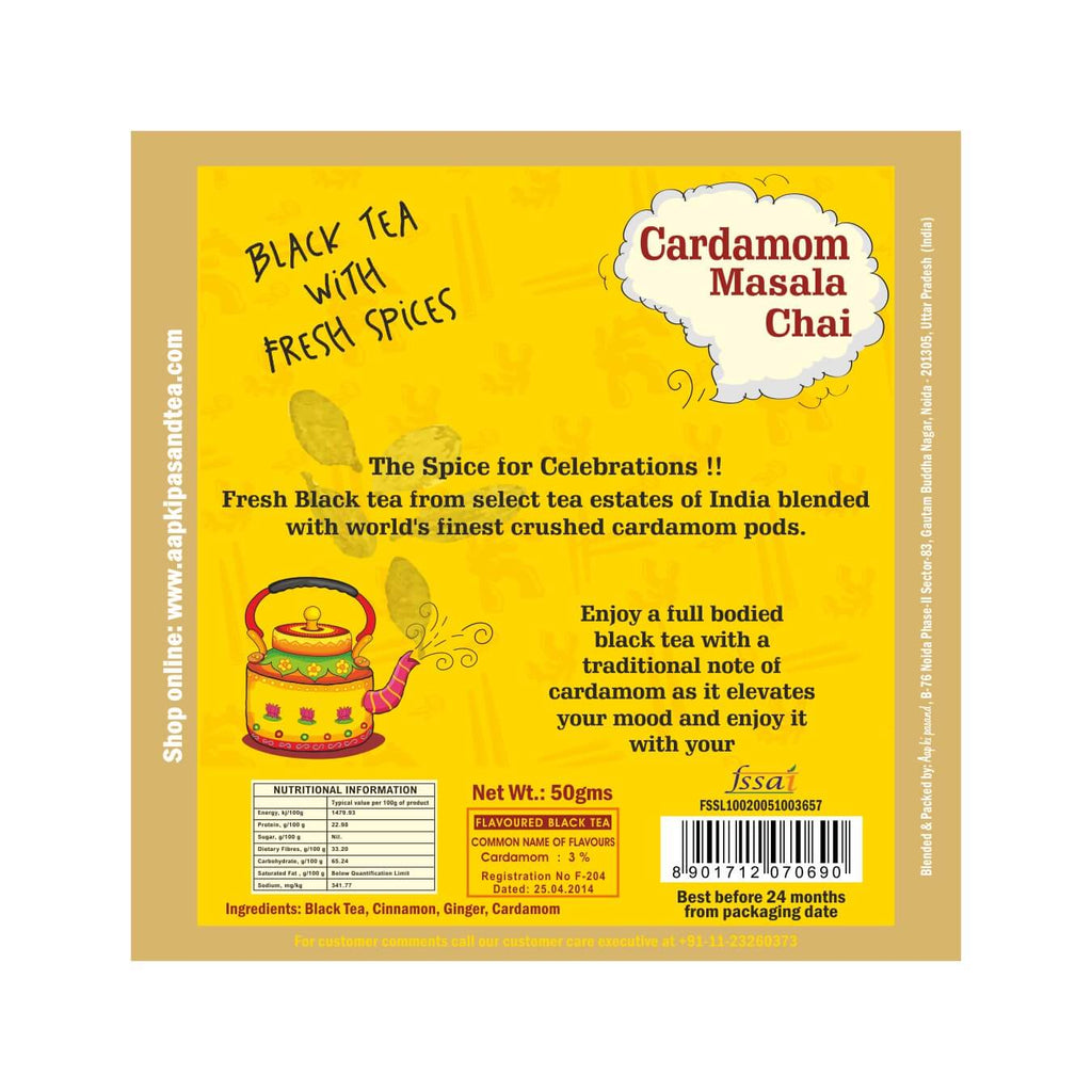 Handcrafted by the Master Tea Blenders at Aap Ki Pasand, this masala chai is blended with a select varietal of Malabar Hills cardamom, renowned for its warm, uplifting aroma. Known as the “Spice of Happiness,” cardamom lends this chai a naturally creamy, comforting, and mood-enhancing character.