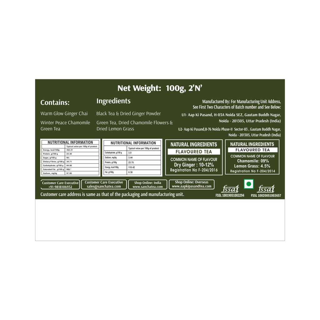 A Curated Duo of Comforting Winter Teas: Warm Glow Ginger Chai & Winter Peace Chamomile Green Tea