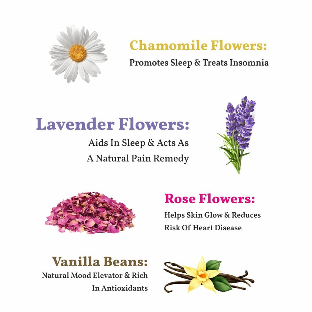 The floral sweetness of chamomile and lavender pairs beautifully with the velvety smoothness of vanilla, creating a soft and comforting herbal tisane that feels like a lullaby in a cup.